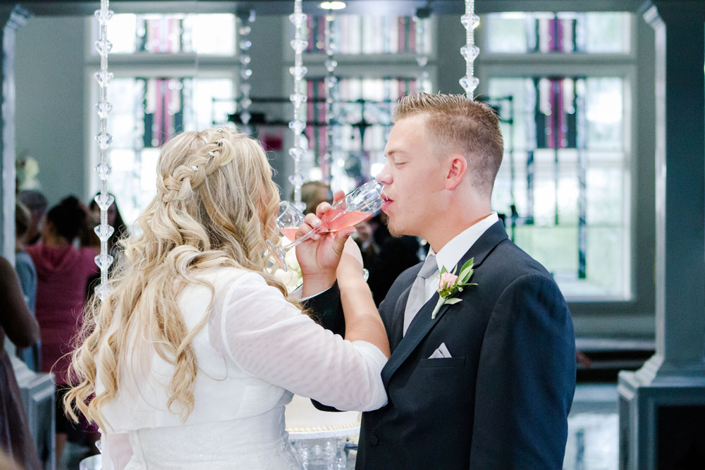 Millennial Falls was a new venue for me. When I walked in, I was stunned at how beautiful it was. It’s an upscale building framed by many trees and greenery. Their hero feature is their beautiful waterfall in the outdoor gardens; hence the name. The inside was white marble everywhere. It kind of reminded me of the capitol. They had these beautiful stained glass windows and grand chandeliers.